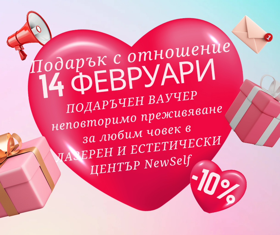 ❤️❤️❤️Казват, че любовта не трябва да се показва с думи, а с действия. Никога не бива да обещаваме нещо, което после няма да можем да изпълним. Въпреки това, кой не обича да чува красиви и искрени думи, изречени с нежност от любимия човек. Ако са нежни думи изпълнени с любов и подарък с отношение. Любовта е доверие ,внимание, благодарност и отношение. Вземи Подаръчен Ваучер - неповторимо преживяване за любим човек в Лазерен и Естетически Център New Self С - 1️⃣0️⃣ % отстъпка от 1️⃣-ви до 1️⃣4️⃣ февруари Вярваме, че един мил жест има сила, която може да накара усмивката ви да изгрее, а сърцето ви да затупти от любов! ❤️❤️❤️